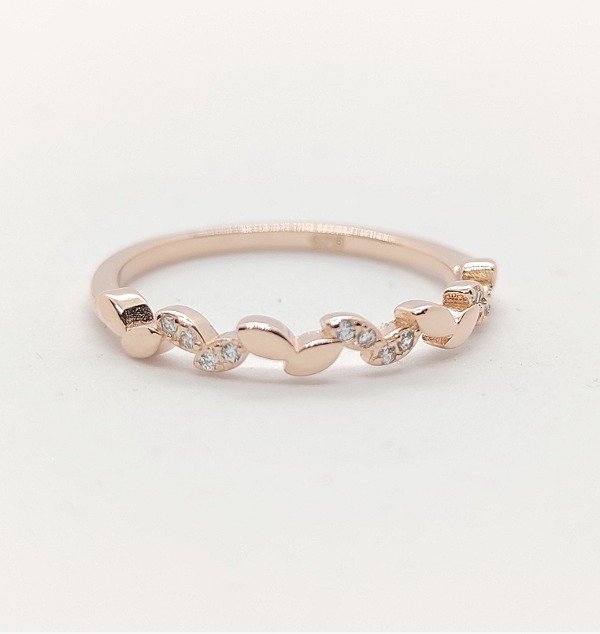 Anillo rosé tipo hojitas, talle 13