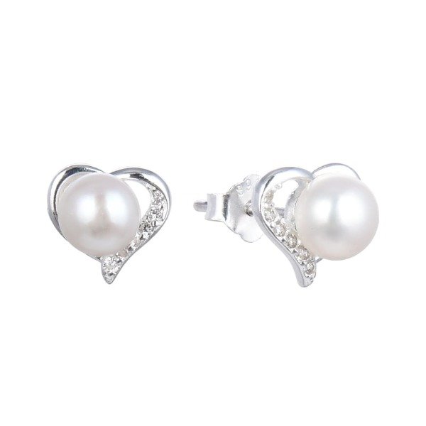 Aro corazón con centro de perla